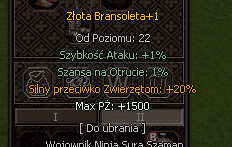 Złota Bransoleta – 1500 HP + 20 ZWIERZĘTA